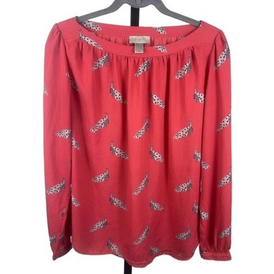 LOFT Women's Coral Peacock Print Long Sleeve Blouse Top Women's Size Small