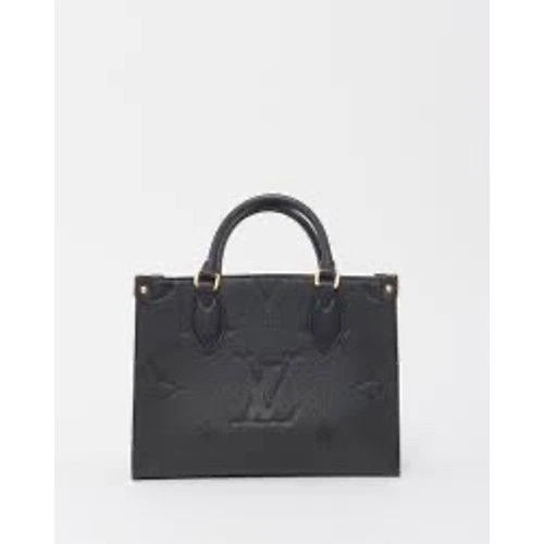 Inspired by Louis Vuitton's famous Sac Plat from 1968, the Onthego PM tote is fashioned in Monogram Empreinte leather, embossed with a subtle embossed Giant Monogram pattern. This smaller version of the original Onthego fits essentials such as an iPad Mini. Articulated top handles and an adjustable removable strap offer a variety of carry options.