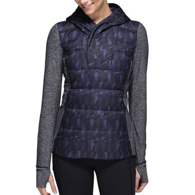 Lululemon Hooded Down For It All Jacket Heathered Black Gray Geometric Size 6