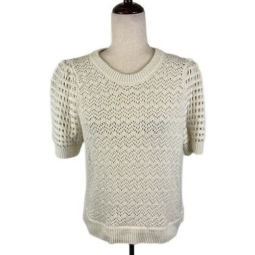 Madewell Women's Top Cream Crochet Knit Short Sleeve Sweater Size Medium Sweater