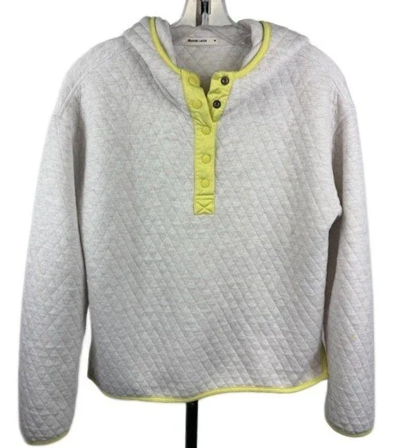 Marine Layer Cream Yellow Quilted Snap Hoodie Fleece Top Women's Size Medium