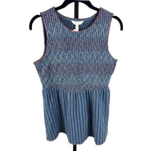 Matilda Jane Women's Size Small Blue Smocked Knit Peplum Top Ruffle Trim Tunic