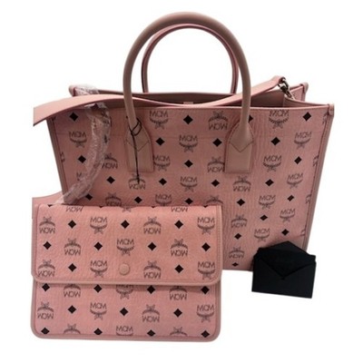 New Authentic MCM Pink Visetos Tote Satchel Purse Bag Pouch