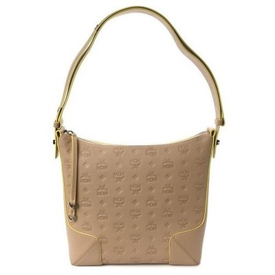 Authentic MCM Klara Monogram Embossed Leather Hobo Shoulder Bag Beige Yellow