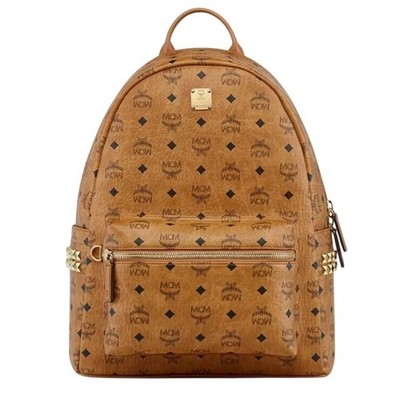 MCM Stark Visetos Monogram Cognac Studded Backpack Coated Canvas Napa Leather