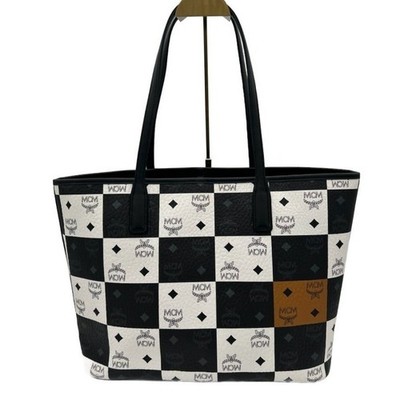 MCM Aren Shopper Tote Black White Checkerboard Leather Bag Purse Visetos Print