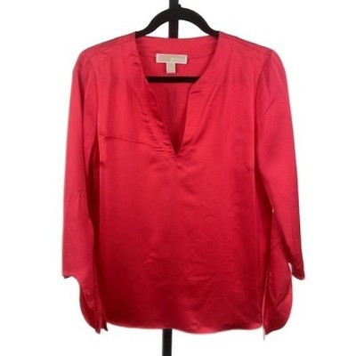 Michael Kors Coral Top Blouse Silky Feel V Neck Long Sleeve Ladies Size Medium