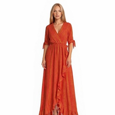 Michael Kors Maxi Dress Tiered Orange Gold Metallic Women's Size Medium Ruffle