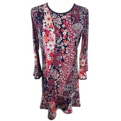 Michael Michael Kors Floral Dress Size Medium Navy Pink Ruffle Hem Bell Sleeve