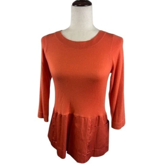 Moth Anthropologie Top Peplum Knit Sweater Coral Orange Women's Size Small