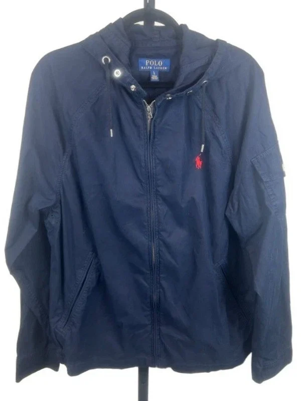 Polo Ralph Lauren Navy Blue Full Zip Hooded Jacket Coat Men's Size Large