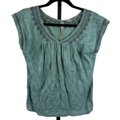 prAna Women's Size Small Teal Organic Cotton Embroidered Boho Cap Sleeve Top
