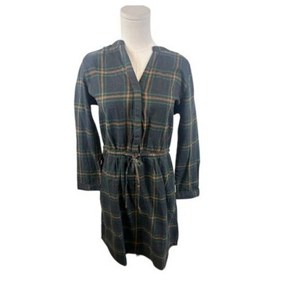 Prana Plaid Dress Organic Cotton Drawstring Waist Casual Flannel Size Small New