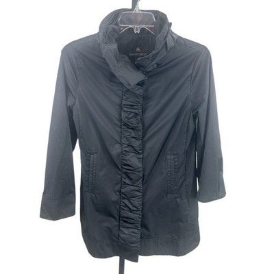 Rainforest Rain Jacket Coat Women's Size Medium Black Hooded Ruffle Front