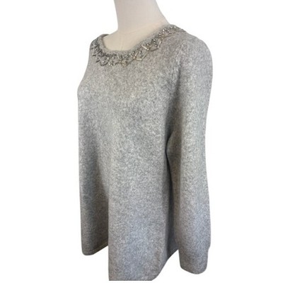 Soft Surroundings Aleza Sweater Beaded Jeweled Neckline Gray Heather Size 1X