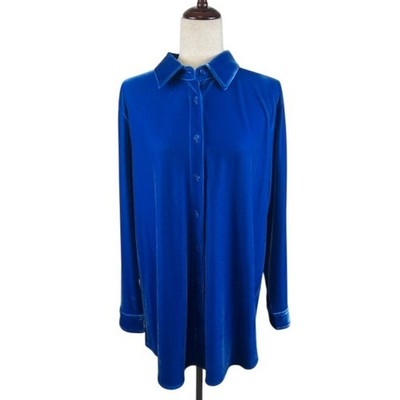NWOT Soft Surroundings Blue Velvet Long Button Up Blouse Top Shirt Size Large