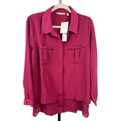 Soft Surroundings Blouse Women's Size Large Sangria Pockets Button Up Shirt