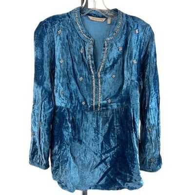 Soft Surroundings Blue Velvet Beaded Jeweled Tunic Top Size XS Petite