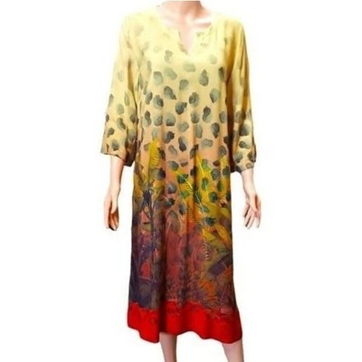 New Soft Surroundings Tivoli Jungle Dress Yellow Green Rayon Size Small $120