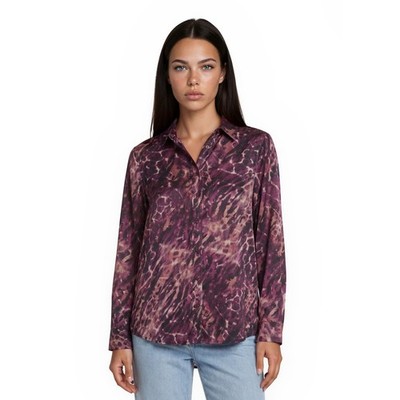 Soft Surroundings 100% Silk Blouse Women's Size Small Purple Animal Print Top