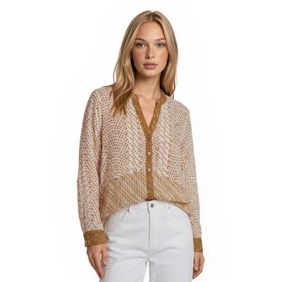 Soft Surroundings Blouse Top Women's Size Medium Ochre White Mixed Print Button