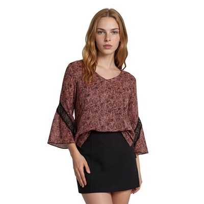Soft Surroundings Blouse Women's Size Medium Floral Burnout Velvet Bell Sleeve