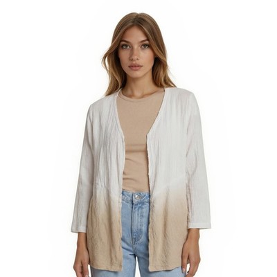 Soft Surroundings Cardigan Top Women's Size Large White Tan Ombre Gauze Tie-Dye