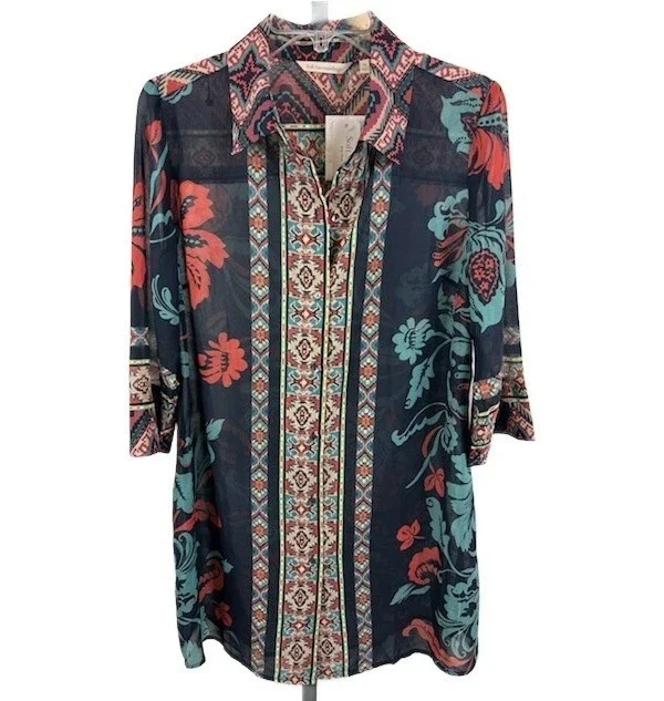 Soft Surroundings Floral Print Topper Shirt Lightweight Bohemian Size M