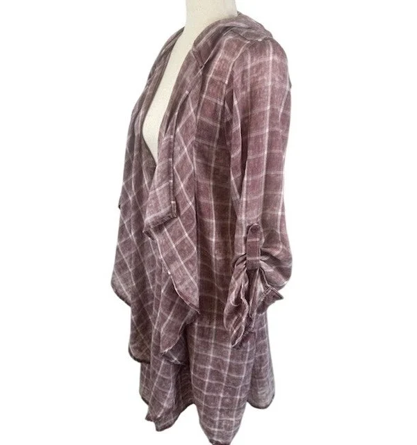 Soft Surroundings Plaid Hooded Ruffle Top Open Long Cardigan Super Comfy Medium