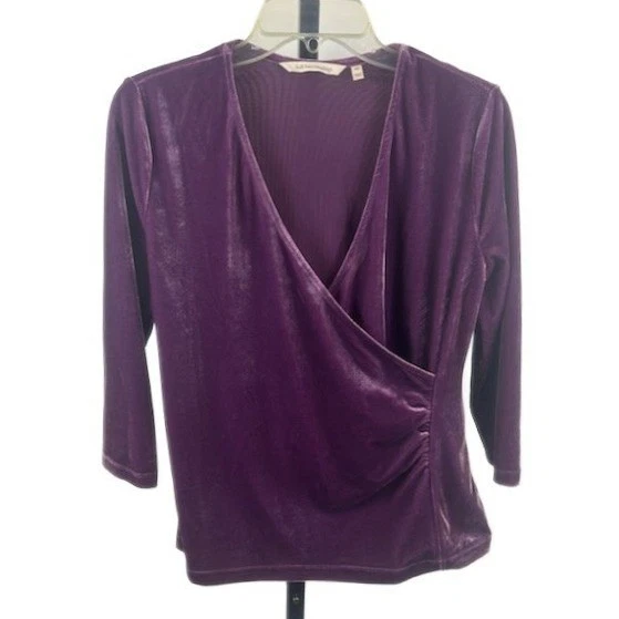 Soft Surroundings Top Women's Medium Petite Purple Velvet PM 3/4 Sleeve Wrap