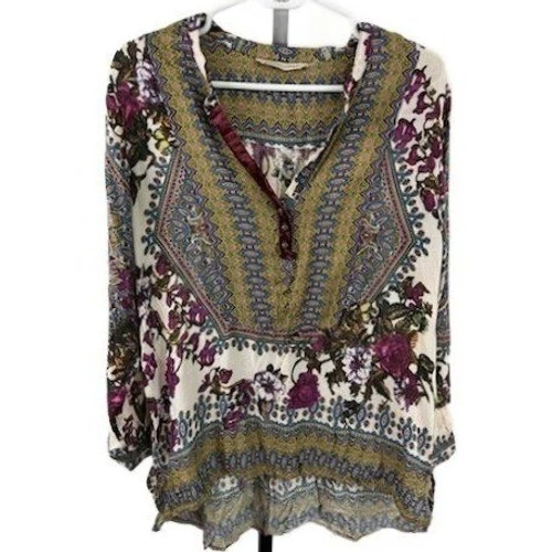 Soft Surroundings Womens Size Medium Petite MP Boho Floral Long Sleeve Tunic Top