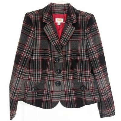 Classic Talbots Plaid Wool Blend Blazer Jacket Women's Size 16