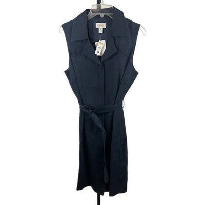 New Talbots Dress Women's Size 16 Navy Blue Sleeveless Belted Shirt Fit Flare