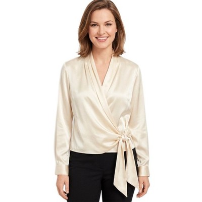 New Talbots Pure 100% Silk Blouse Women's Size 12 Cream Ivory Wrap Side-Tie