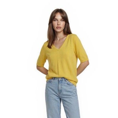 NEW Talbots Sweater Womens Size XS Yellow V-Neck Short Sleeve Knit Summer Spring