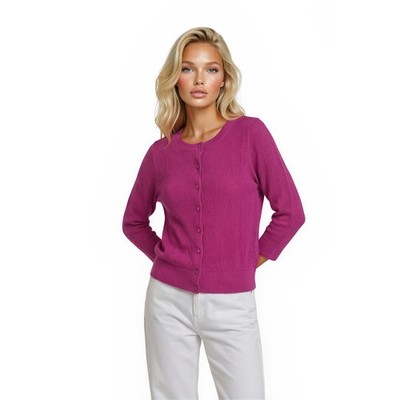 NEW Talbots Cardigan Sweater Women's Size PM Magenta Pink Pima Cotton Pointelle