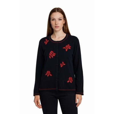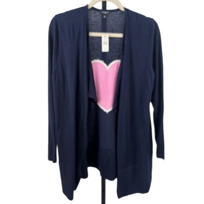 New Talbots Sweater Women's Size X Navy Blue Open Front Cardigan Pink Heart