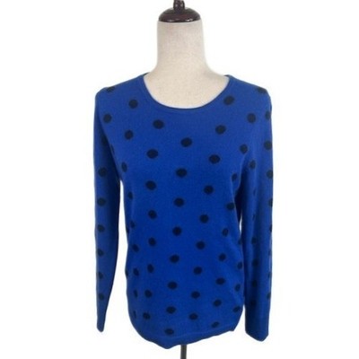 Chic Talbots Pure 100% Cashmere Blue Black Polka Dot Sweater Women's Size Small