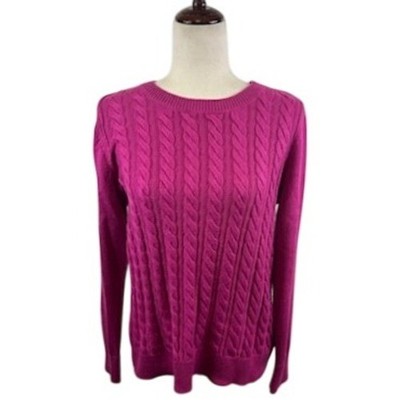 Talbots Sweater Women's Size Large Magenta Pink Cable Knit Button Shoulder