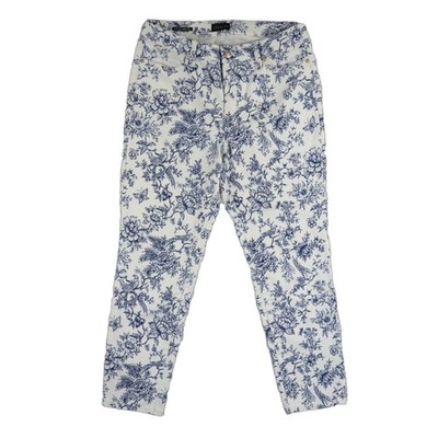 Talbots Slim Ankle Jeans Women's Size 10P White Blue Floral Toile Denim