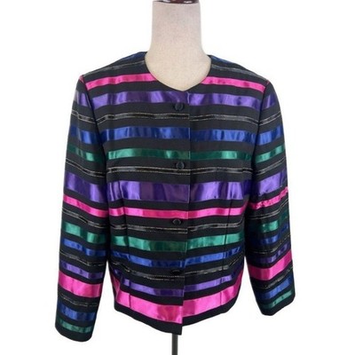 Talbots Women's Colorful Stripe Button Front Blazer Jacket Holiday Party Size 12