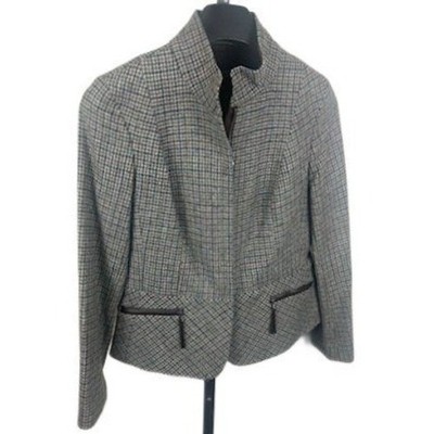 Talbots Plaid Wool Blend Blazer Jacket Women's Size 8 Petite 8P Houndstooth