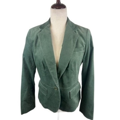 Talbots Green Velvet Blazer Cotton Blend Classic Jacket Size 8P Petite