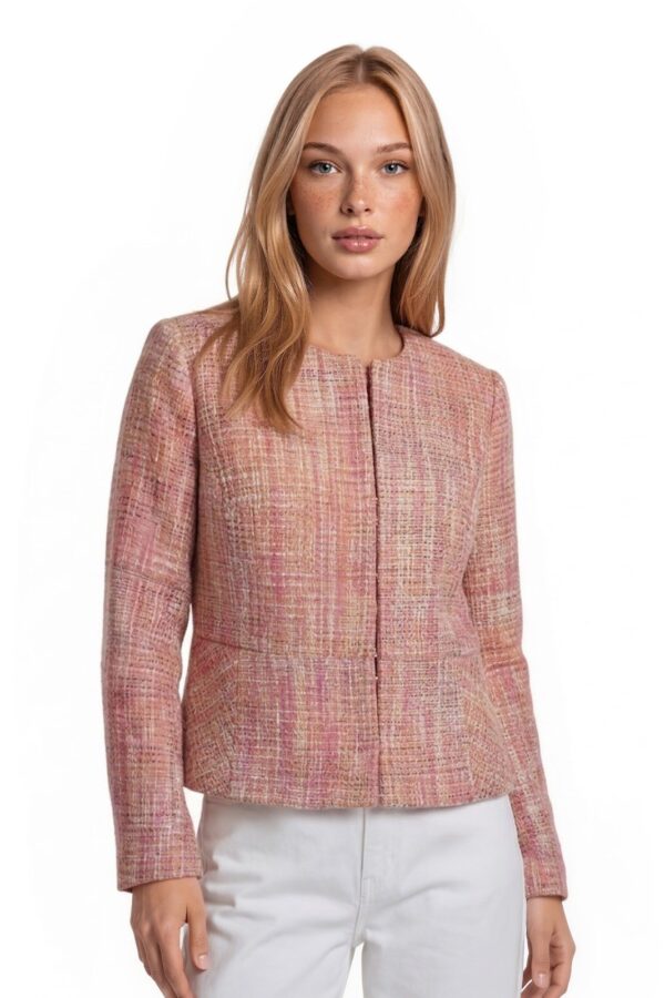 Talbots Petites Blazer Jacket Women's Size 6P Pink Orange Tweed Collarless