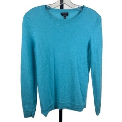 Talbots Women's 100% Cashmere Sweater Size Medium Blue Pure Crew Neck Soft Warm