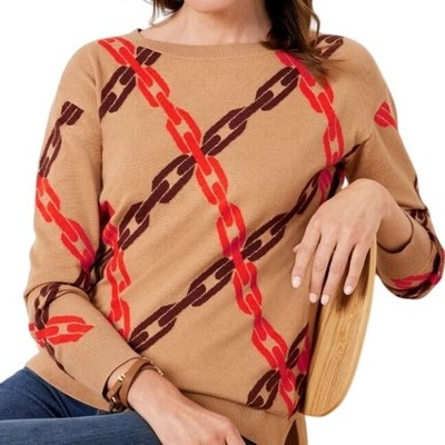 Talbots Women's Chain Print Knit Sweater Brown Orange Long Sleeve Size Small
