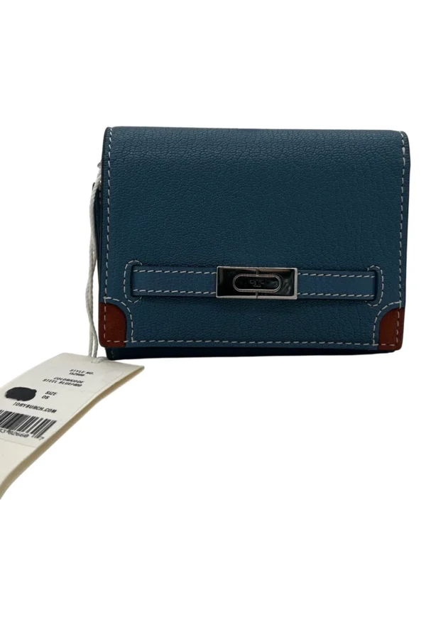 New Tory Burch T Textured Wallet Medium Purse Leather Small Blue $298