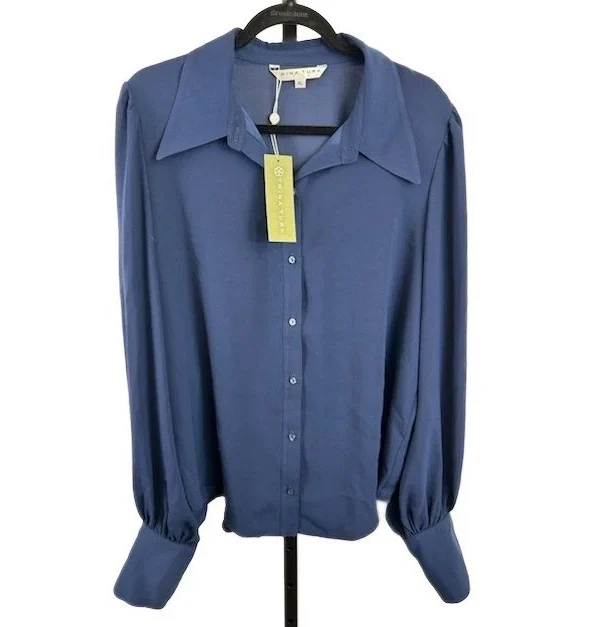 New TRINA TURK Blouse Women's Size XL Blue Button Collared Long Sleeve Shirt Top