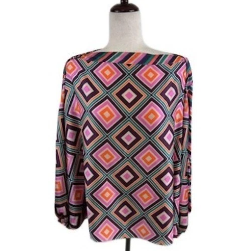 Trina Turk Women's Size M/L Geometric Diamond Stripe Boat Neck Blouse Top Medium
