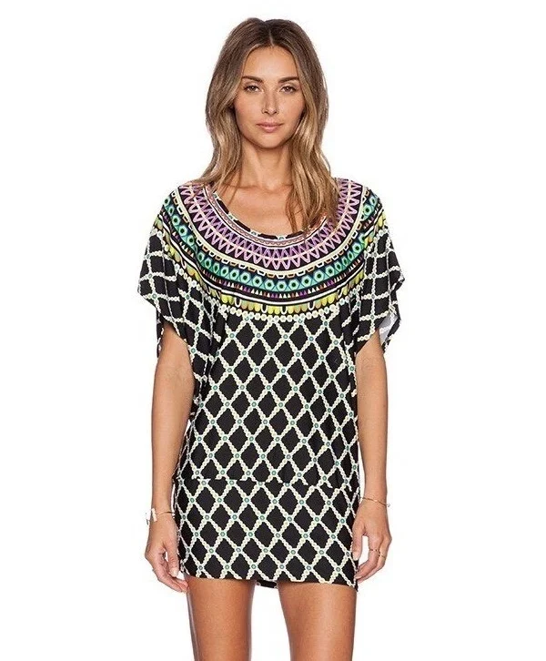Type: Cover Up Color: Black Department: Women Material: Nylon Features: Resort Wear, Lightweight, Comfortable Fit, Short Sleeve, Relaxed Fit Pattern: Geometric